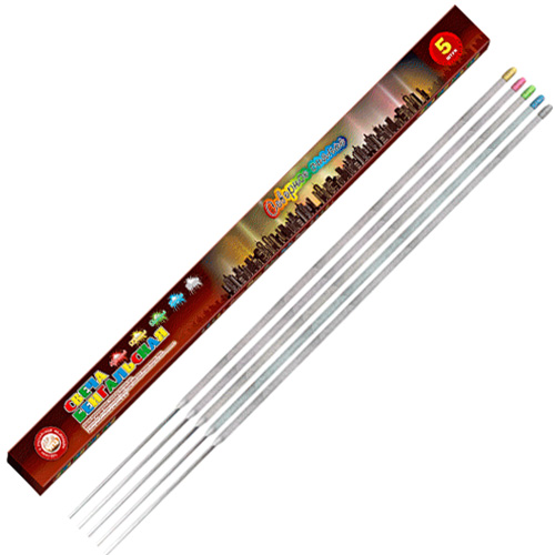Бенгальская свеча 650 мм "Северное сияние". 5 шт. в упаковке. Разбрасывается золотистые искры, цветное пламя различных цветов: красный, желтый ,зеленый, голубой, белый.