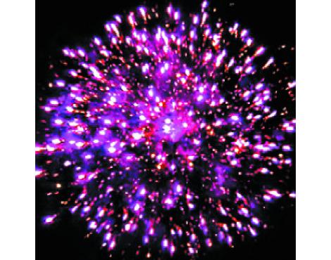 8. Фиолетовая сфера (пион), облако трещащих разрывов (трещащий дождь) и золотое мерцание.