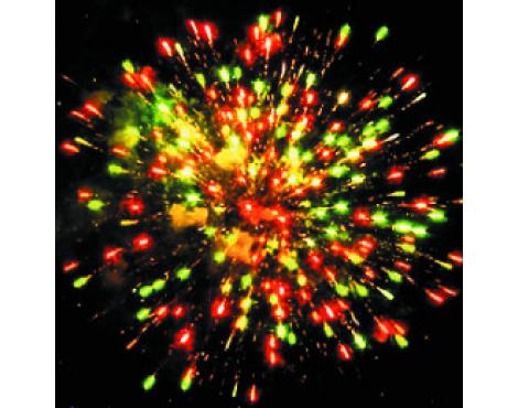 6. Красно-зелено-синяя сфера (пион) и треск.