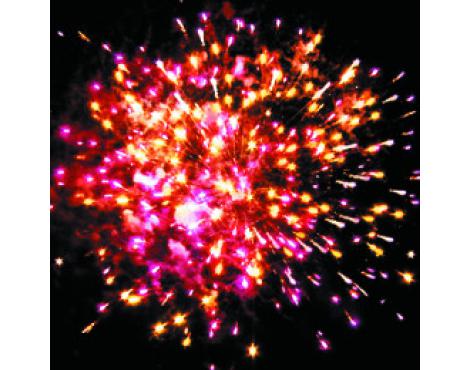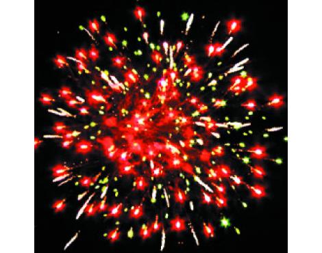 3. Красная сфера (пион) с переходом в белые хвосты (кокос) и треск.