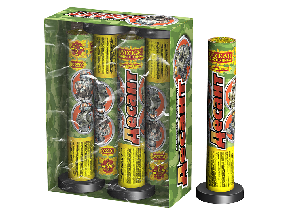 эффект. Парашют с игрушечным солдатиком, который опускается со шлейфом из цветного дыма.