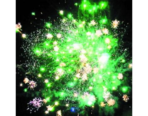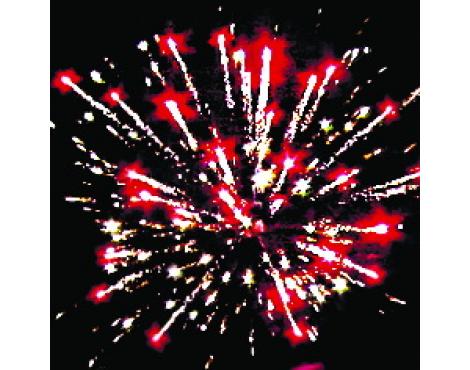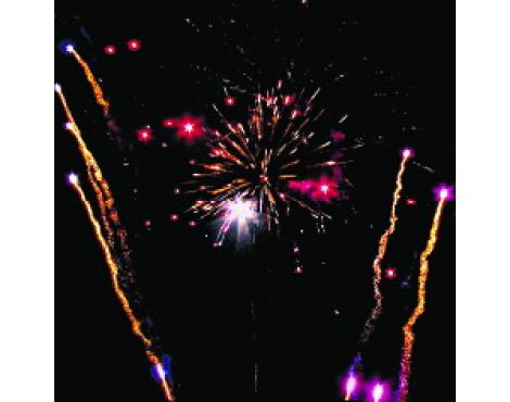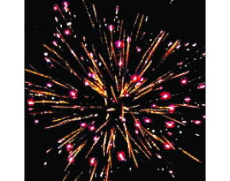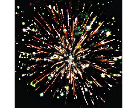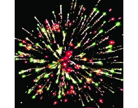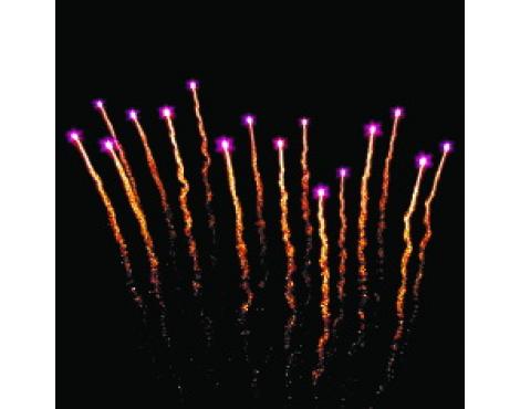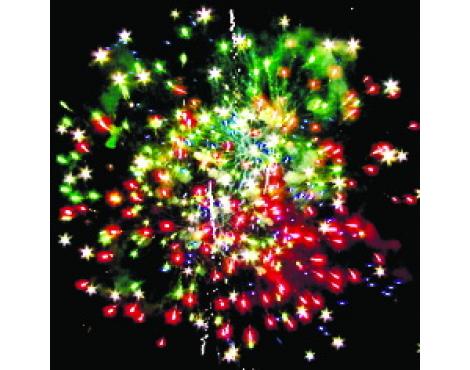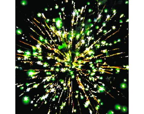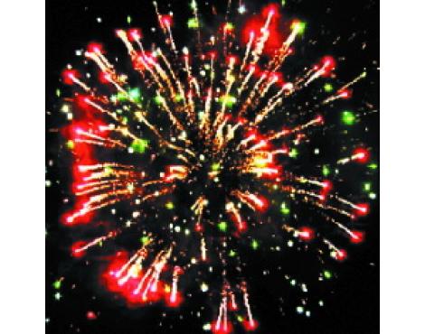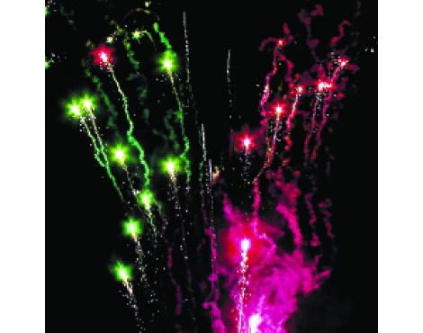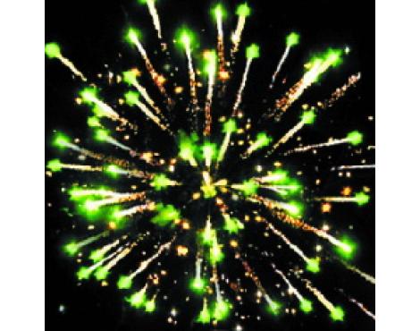 15. Веер Z-формы: зеленые и красные кометы с трещащими хвостами и свист.