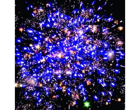 хвостами (кокос) и золотое мерцание. Красные звезды с пышными хвостами (кокос) и белое мерцание. Зеленые звезды с пышными хвостами (кокос) и красное мерцание.
