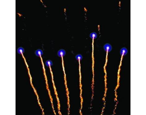 11-14. Выстреливает подряд: Множество золотых ниспадающих нитей (парча) и красное мерцание. Множество золотых ниспадающих нитей (парча) и зеленое мерцание.