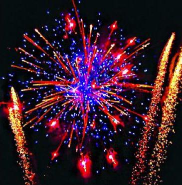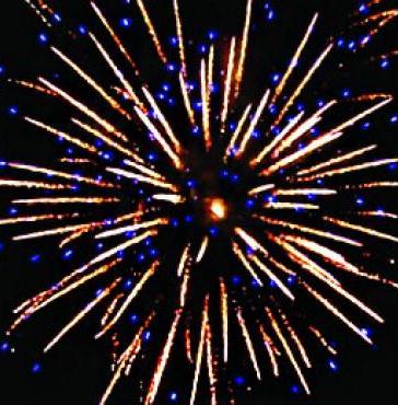 16. Мерцающая комета разрывается мерцающими золотыми хвостами (мерцающая ива) и синими звездами.