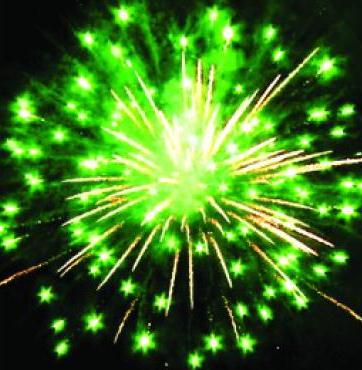 6. Серебряная комета разрывается зелеными звездами с пышными хвостами (кокос) и золотым мерцанием.