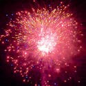 2 уровня. Нижний уровень - букеты из золотых форсов. Разноцветные кометы, мерцающие шуршащие трассы разрываются сферами из:
