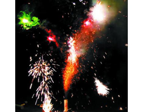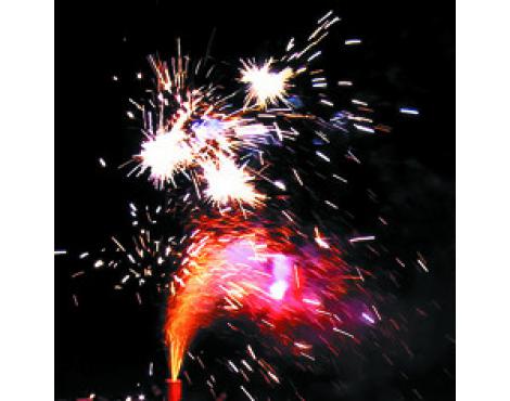 4. Поток золотых искр, красные и зеленые огни, объемный треск. (до 25 сек., до 1,5 м)