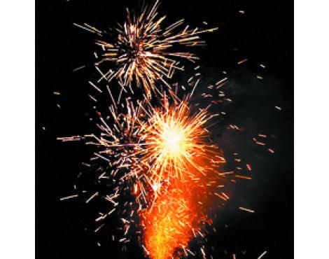 3. Поток золотых искр, красные и лимонные огни, треск.