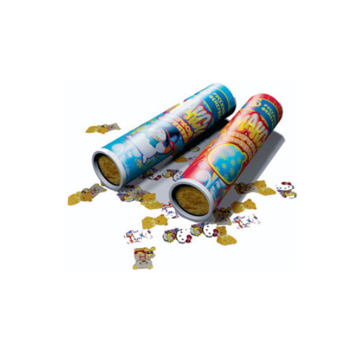 В наших каталогах хлопушки, фейерверки и прочая пиротехника всегда украшены самыми привлекательными ценами. Но вернёмся к "Макси". Оформление корпуса этой хлопушки с серпантином вроде бы не обещает ничего сногсшибательного. Пёстрый, симпатичный рисунок на глянцевой поверхности пластмассового тубуса позволяет использовать эти пиротехнические изделия как новогодние игрушки: хлопушки становятся на порядок привлекательней, когда висят на ёлке, среди радужных шаров из тонкого стекла, разноцветных лампочек, завёрнутых в фольгу орехов и шоколадных зайцев. К тому же они в таком окружении приобретают статус новогоднего подарка! Так что если вы предполагаете, что к вам в новогоднюю ночь могут прийти незапланированные гости с детьми (на то и Новый Год, чтобы сюрпризы были!), то хлопушки купить и развесить их на ёлке будет только предусмотрительно. Но самое главное удивление вас ждёт после залпа. Звук выстрела сам по себе заслуживает одобрения, но обилие серпантина парящего в воздухе после «извержения» хлопушки, картинки, которые небрежными кривыми обозначает в пространстве блестящие живые ленты, заслуживают того, чтобы их сфотографировал хороший художник.