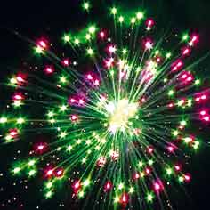 1. Красные, фиолетовые, желтые звезды с пышными хвостами (кокос) и облако трещащих разрывов (трещащий дождь).