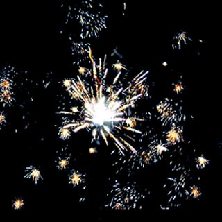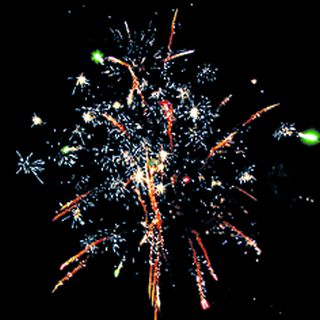 Разноцветные кометы, золотые искристые трассы разрываются сферами из: