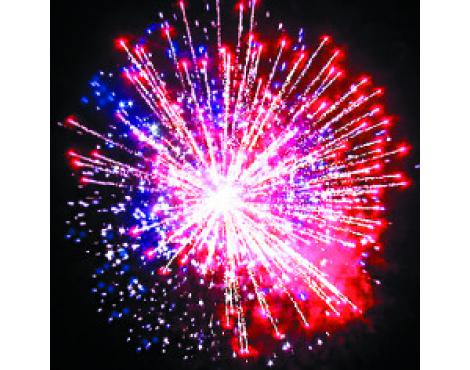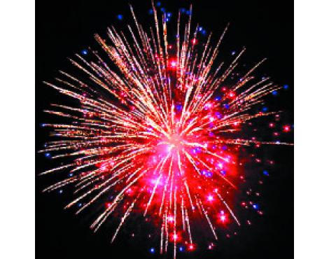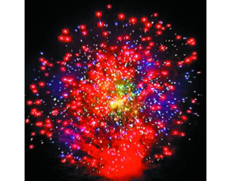 4. Множество серебряных ниспадающих нитей (парча), красные звезды и облако трещащих разрывов (трещащая хризантема)