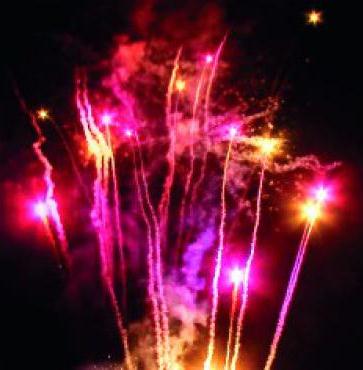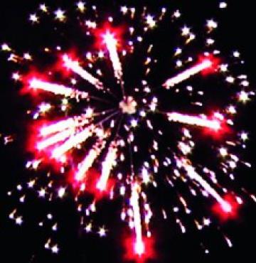 Вверху - веер V-формы: серебряные звезды с пышными трещащими хвостами (трещащий кокос).