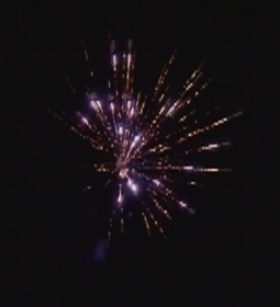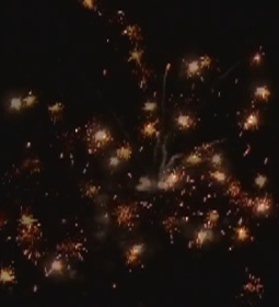 Разноцветные кометы разрываются сферами из трещащих и цветных огней: