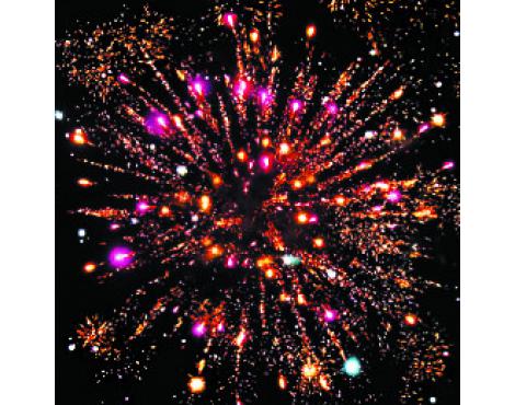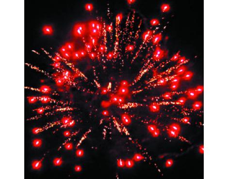 1. Красная сфера (пион) и облако трещащих разрывов (трещащая хризантема).