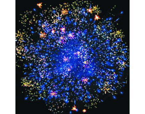 2. Синяя сфера (пион) и облако треска (хризатема).