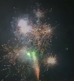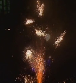 - разлетающихся трещащих серебряных искр, красных и зелёных огней.