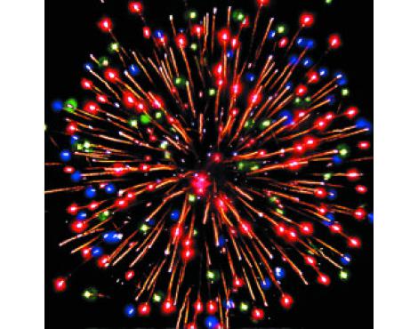 1. Сфера золотых хвостов с переходом в красно-зелено-синие звезды (цветная хризантема).
