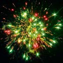 15-16. Веер. Сферы из серебряных форсов с зелёными огнями на концах,трещащих огней; букетики из красных мерцающих и разбегающихся серебряных огоньков.