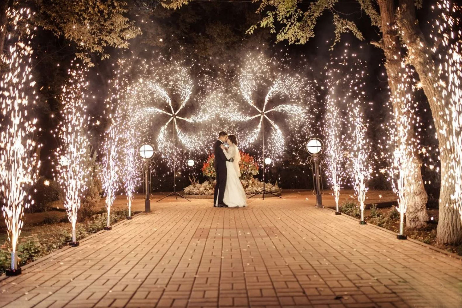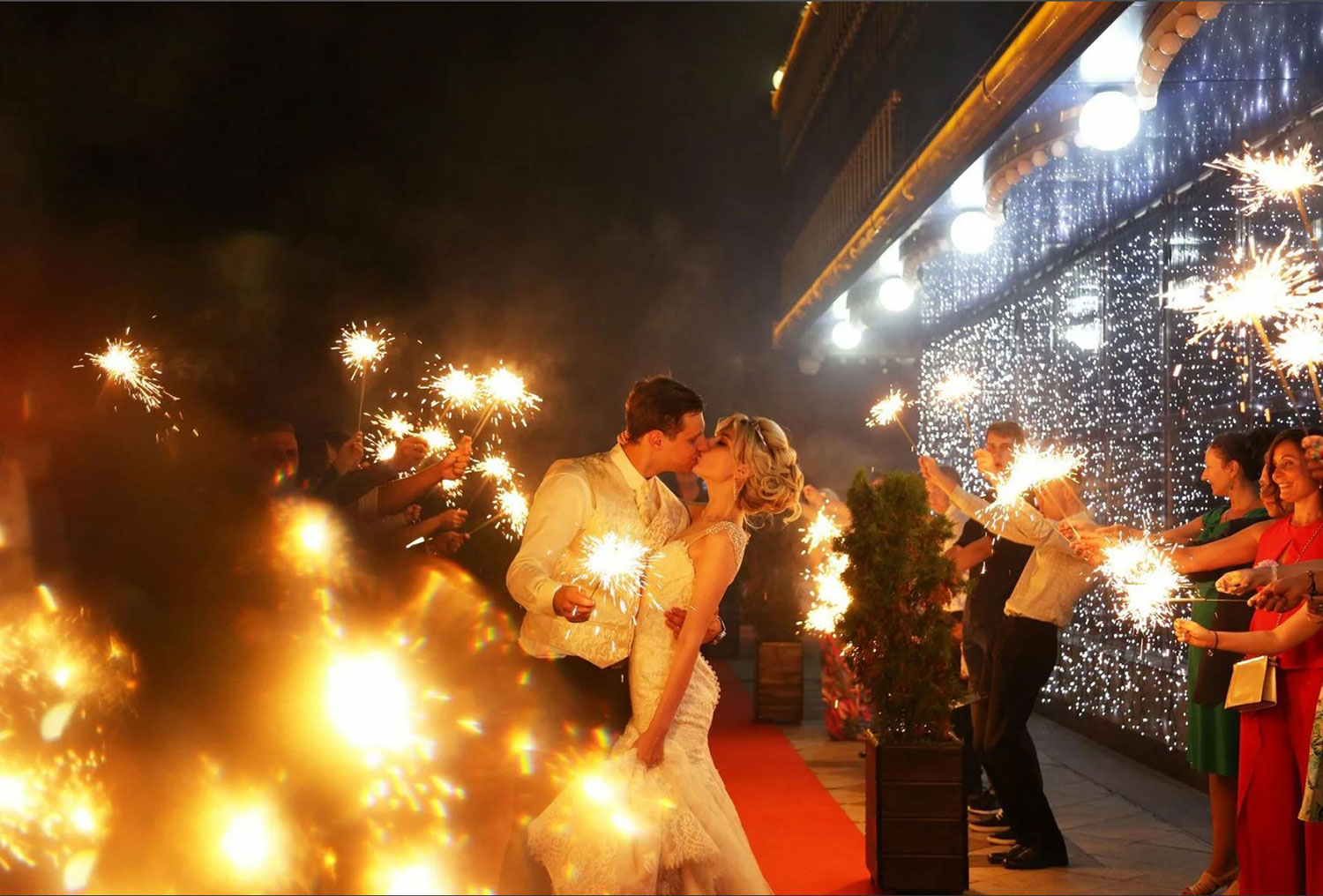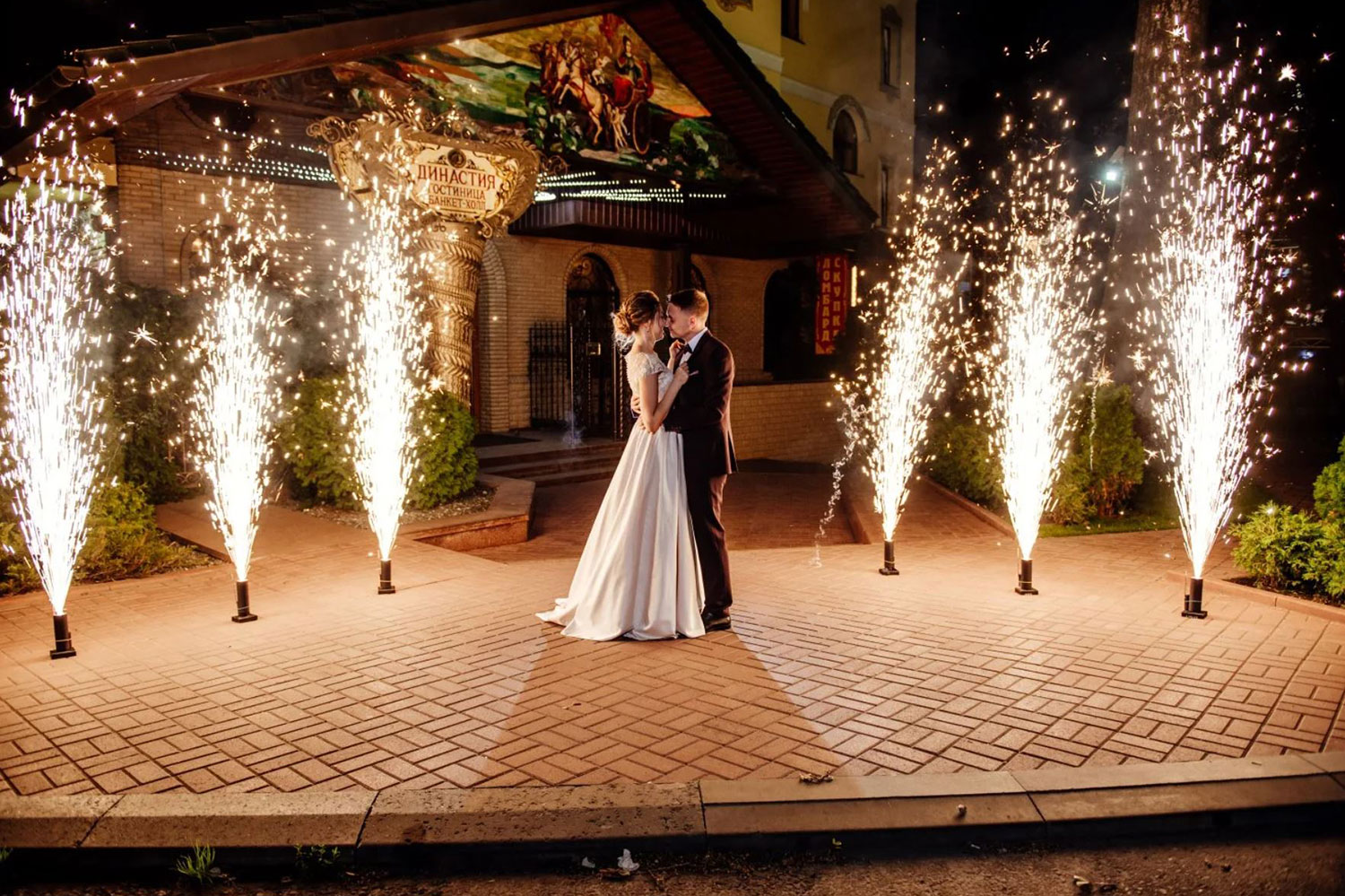 - На торжественный выход молодой пары - дорожку из холодных фонтанов